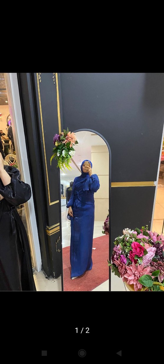 Lacivert renkli, drapeli ve ince askılı, klasik şıklığı modern dokunuşlarla birleştiren uzun ve vücuda oturan abiye elbise. 1 kere giyildi şala beraber satılık