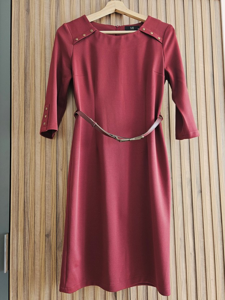 Klasik Midi Boy Kırmızı Bordo Elbise