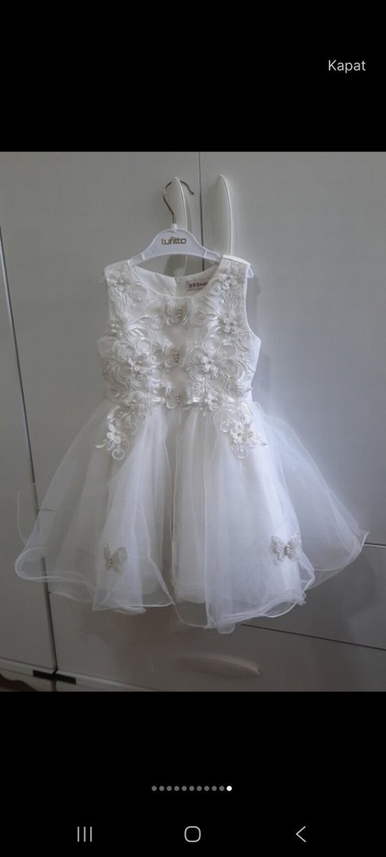 Klasik Mini Beyaz Kız Çocuk Abiye Elbise