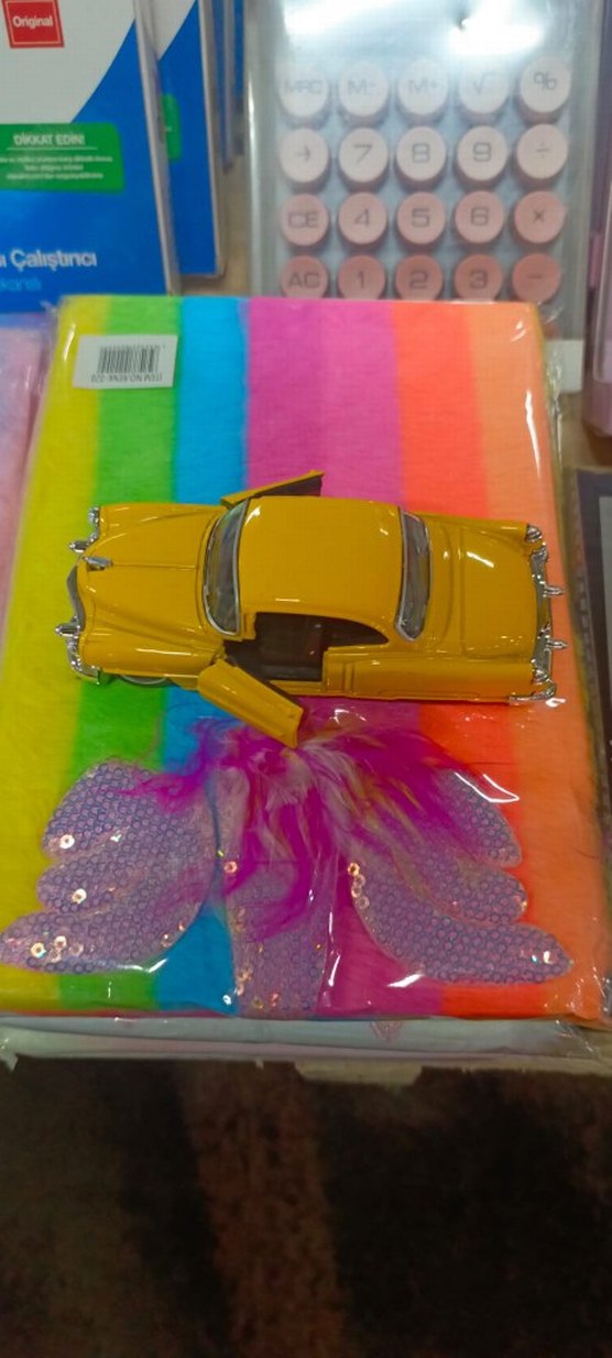 Kapısı açılabilen, renkli detaylara sahip oyuncak araba. Paket üzerinde "surci" yazısı bulunur. Oyun zamanı için uygun.