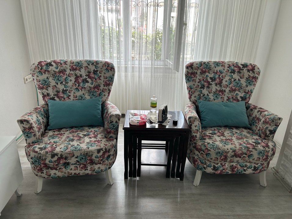 Koltuk takımı satılıktır iki adet çiçekli berjer iki adet koltuk büyük koltukların üstüne örtü koyup kullanıyorum örtü alan kişiye hediye olarak gidecek ilgilenene resmini atarım hiçbir sorun yoktur