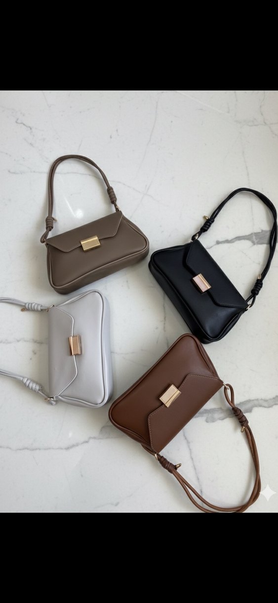 Minimalist tarzda, tokalı deri kadın çanta. Kahverengi, siyah, gri ve beyaz renk seçenekleriyle modern klasik tasarım, günlük şıklık için idealdir.