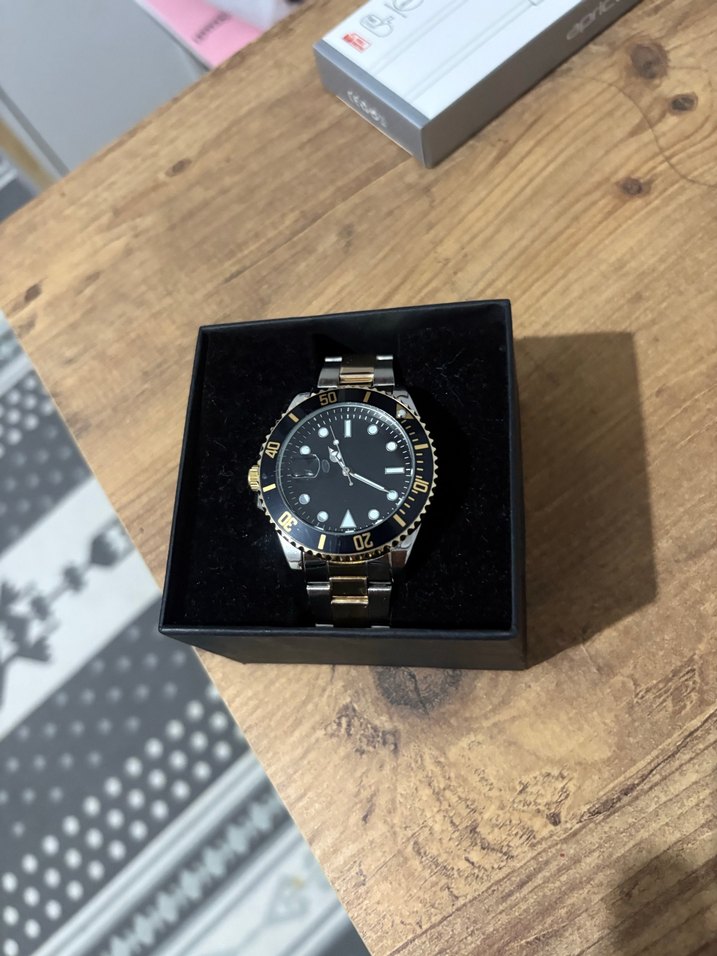 Bu erkek saati, yuvarlak kadran ve metal kayış ile klasik ve modern tarzı harmanlayan altın ve siyah tasarıma sahiptir. ⌚ Kullanmadığım için satıyorum sıfır ürün