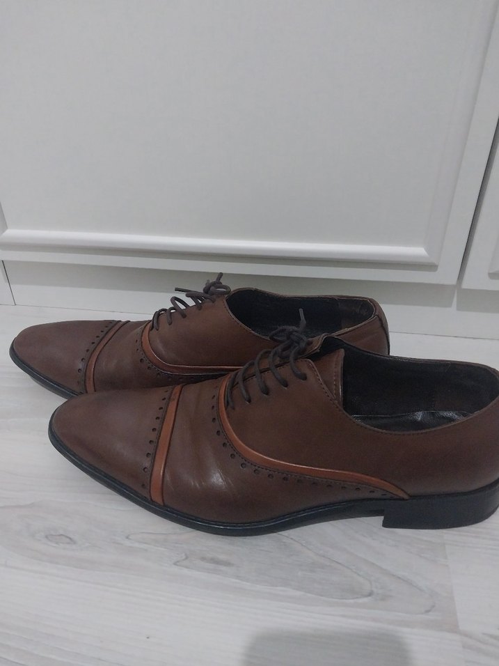 Koyu kahverengi deri, desen içermeyen erkek klasik ayakkabılar. Ofis ortamına uygun, modern klasik ve zahmetsiz şıklık sunar.