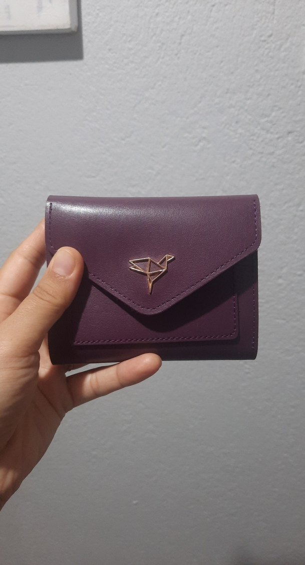 Koyu mor renkte deri kadın cüzdanı, tokalı kapak ve minimal baskılı detaylarla günlük kullanıma uygun klasik sokak stili sunar. az kullanılmış sadece fermuarlı kısımda sökük var ama kullanıma engel değil.yeni görünümlü.