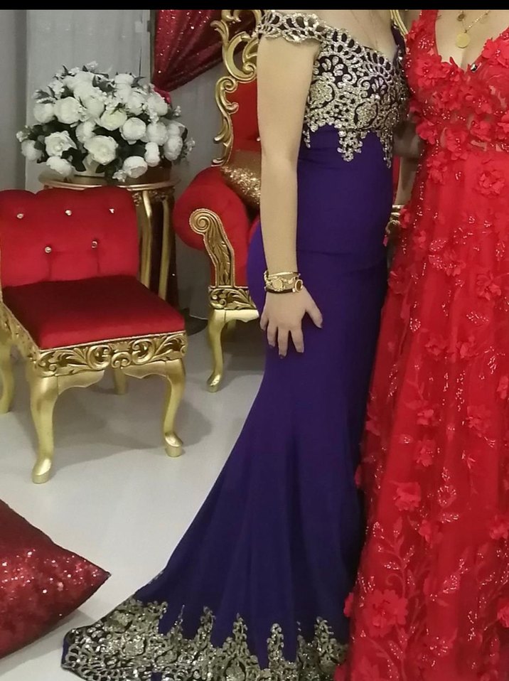 Klasik Mor Uzun Drapeli kayık yaka Abiye