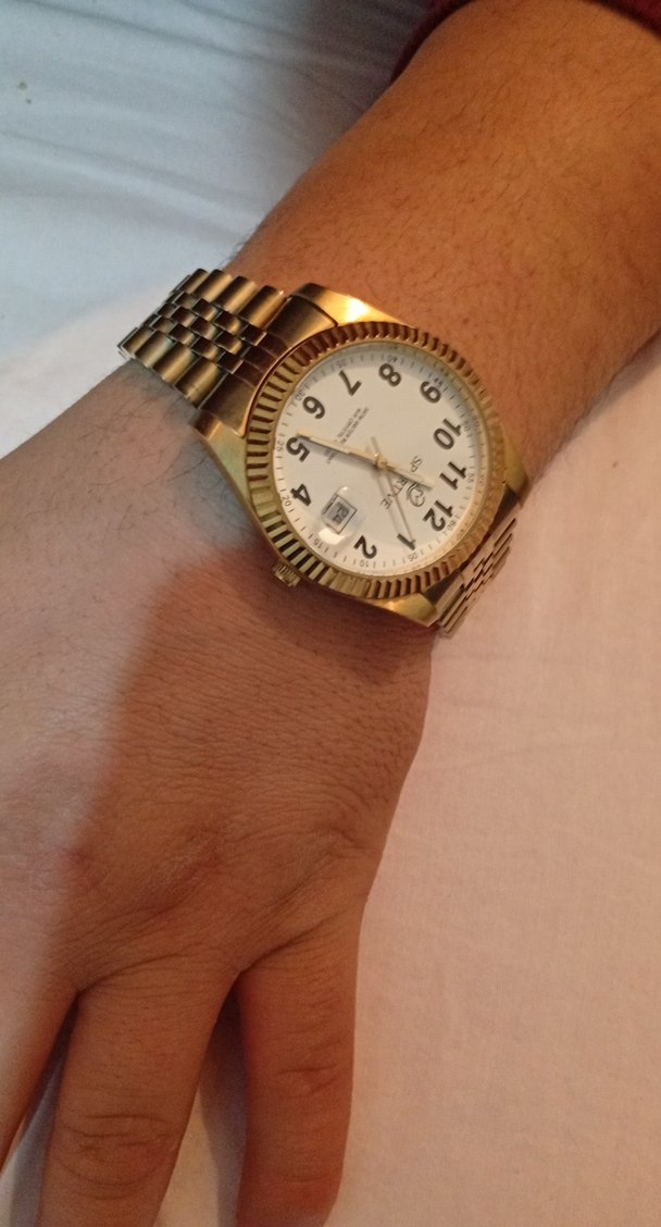 SPORTIVE Erkek Kol Saati – Altın Kaplama, Şık Tasarım Temiz kullanılmış SPORTIVE marka erkek kol saati satılıktır. Kasa ve bilezik paslanmaz çelik, üzeri altın kaplamadır. Günlük kullanım için şık ve klasik bir modeldir. Özellikler: Quartz (pilli) mekanizma Tarih göstergesi Paslanmaz çelik kasa ve bilezik 4 ATM suya dayanıklılık (el yıkama / yağmur) Cam: Mineral cam Durum: Saat çalışır durumdadır. Kozmetik olarak normal kullanım izleri vardır. Altın değildir, altın kaplama modeldir. pili bitmiş ama çalısır durumda