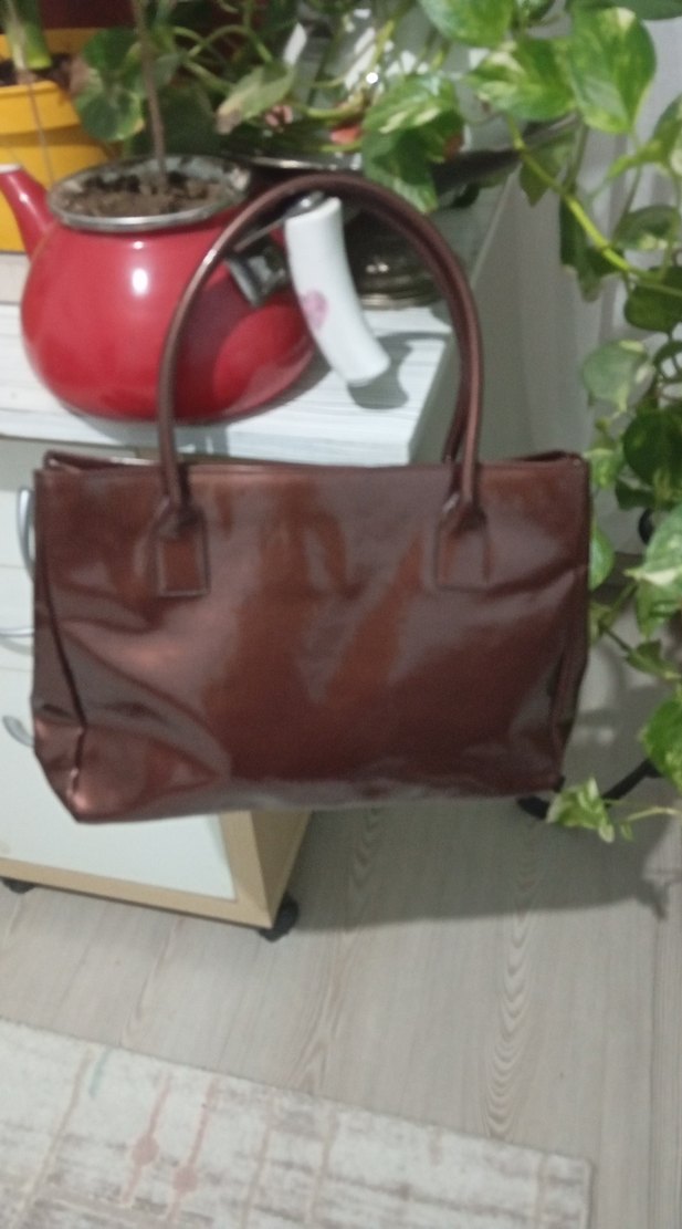 Klasik Parlak Kahverengi Deri Kadın Çanta
