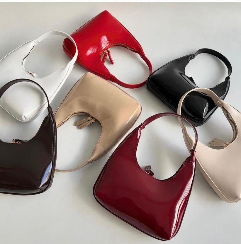 Klasik Parlak siyah ve krem Deri Kadın Çanta