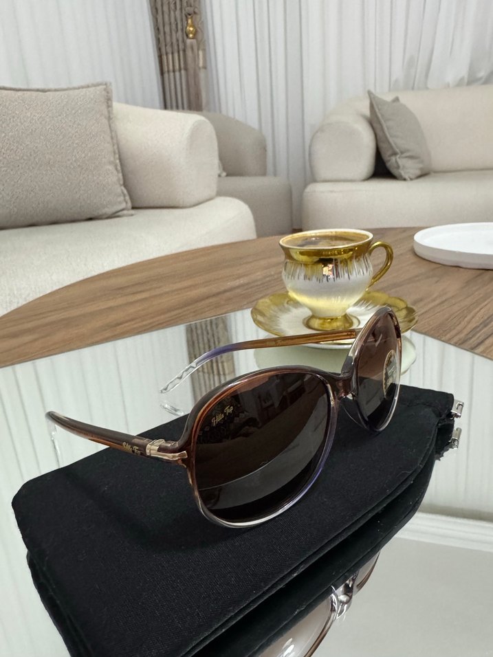 Klasik zarafet ve bohem tarzı birleştiren, şeffaf saplı parlak kahverengi kadın güneş gözlüğü. ️