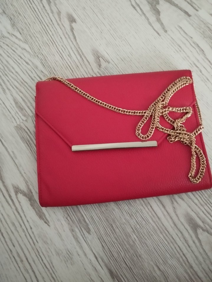 Kırmızı deri, parlak yüzeyli, zincir detaylı kadın çanta. Klasik şıklık ve modern Paris tarzını romantik akşamlara taşıyor.