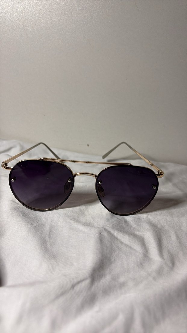 Klasik zarafeti ve rahat şıklığı birleştiren ince altın çerçeveli, koyu mor minimalist güneş gözlüğü. Sokak stiline uygun. Hafif görünmeyecek şekilde soyulmaları var fotoğraftaki gibi onun dışında kaliteli bir gözlük