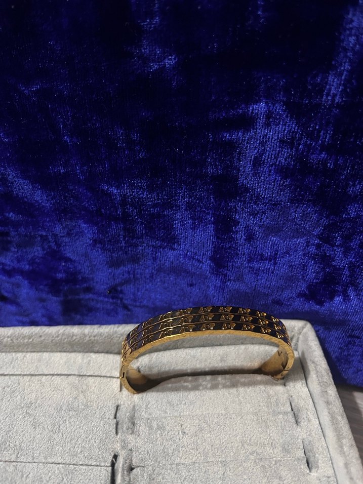 Altın renkli, yılan derisi desenli ve tokalı bileklik, çağdaş tarzı klasik şıklıkla buluşturur. Romantik akşamlar için uygundur. ✨