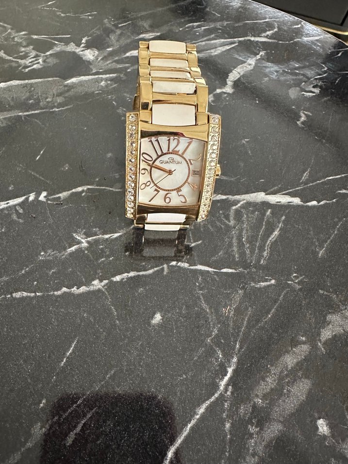Parlak altın renkli, tokalı kayışlı kadın kol saati. Kristallerle süslenmiş dikdörtgen kadranı, Paris şıklığı ve modern klasik tarzı bir araya getiriyor. ⌚