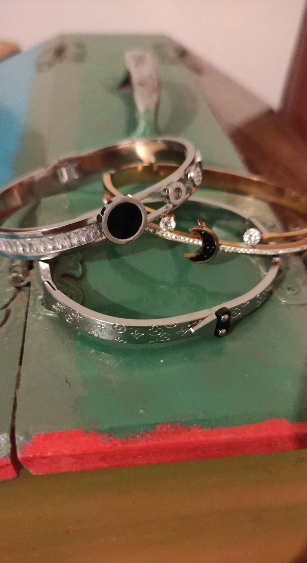 Altın renkli, tokalı tasarıma sahip bilezik. Koyu renkte, desen içermeyen, çağdaş ve göz alıcı tarzıyla günlük kullanıma uygundur. ✨