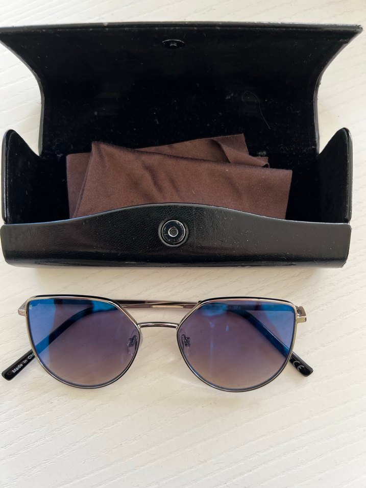 Mavi camlı, tokalı çerçeveli kadın güneş gözlüğü, modern klasik tarzda zarif bir görünüm sunar. Siyah kılıf ve temizleme bezi ile birlikte gelir. ️