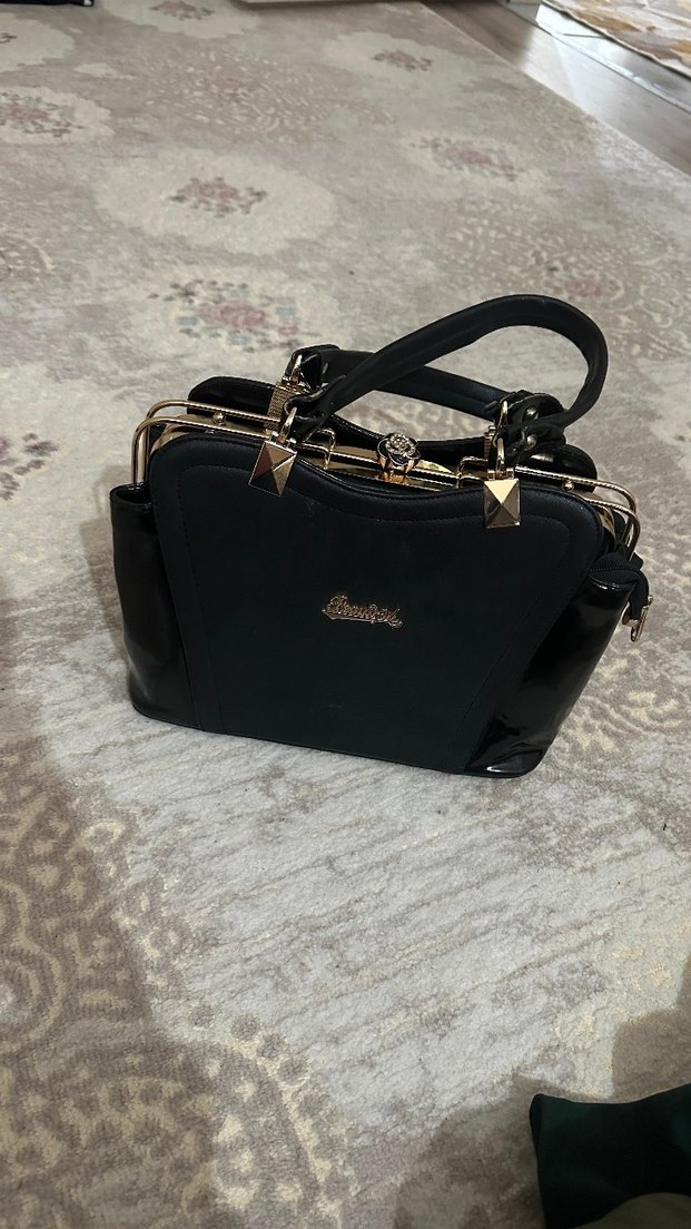 Klasik şıklığı yansıtan, parlak siyah deri kadın çantası, tokalı detaylara sahip ve gotik tarzı tamamlar. Günlük kullanıma uygundur.