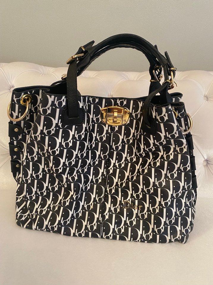 Siyah deri çanta, baskılı deseni ve tokalı kapamasıyla klasik zarafet ve çağdaş Paris tarzını bir araya getirir.