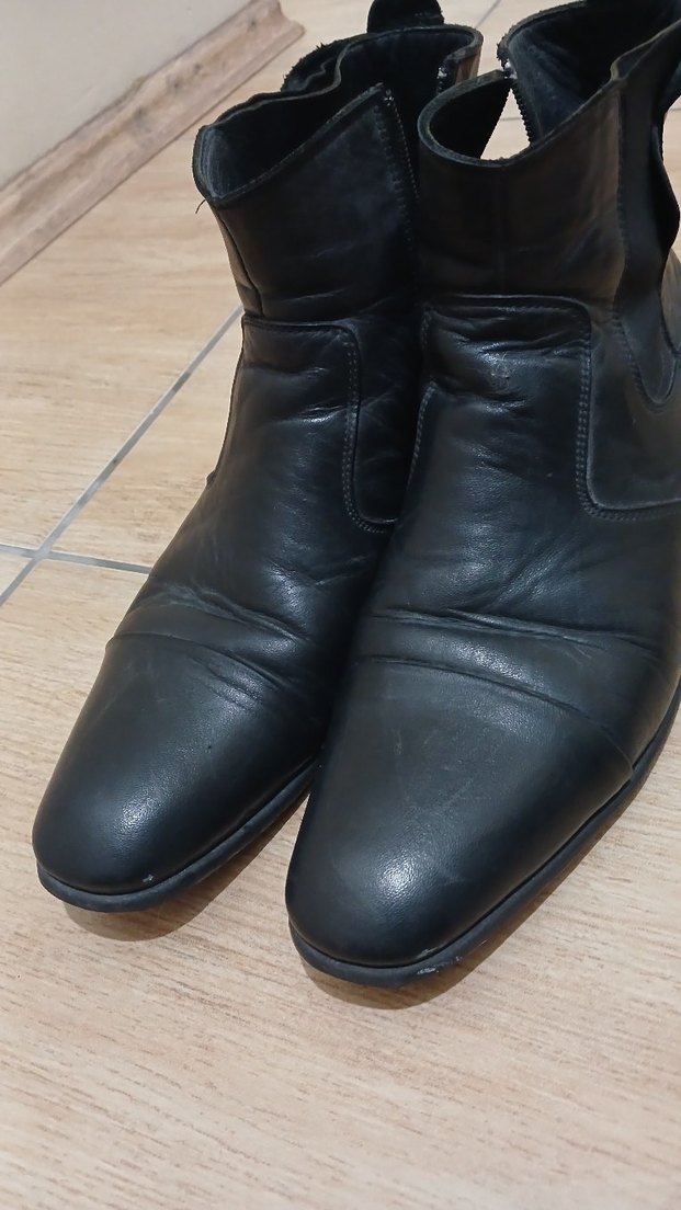 Klasik Siyah Deri Biker Bot
