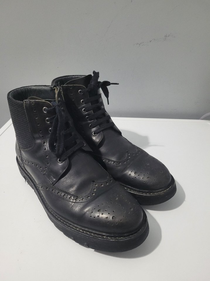 Klasik ve gotik tarzda, tokalı ve bağcıklı siyah deri erkek bot, ofis kullanımı için uygundur.