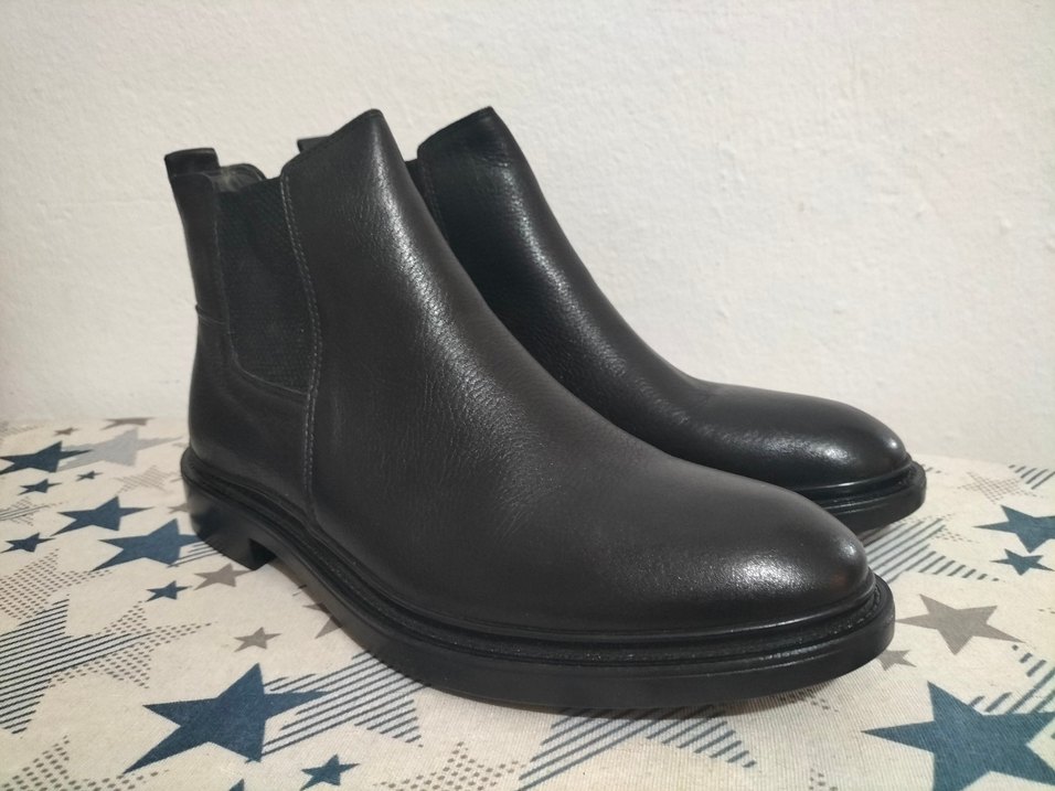 Siyah deri erkek bot, şık tasarım ve tokalı detaylarla ofis kullanımı için uygundur.