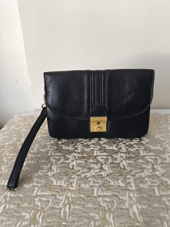 Kilitli tokası ve vintage tarzıyla siyah deri erkek çanta, ofis kullanımı için klasik ve şık bir seçimdir. Boyutları : 22.5 X 15.5 CM.