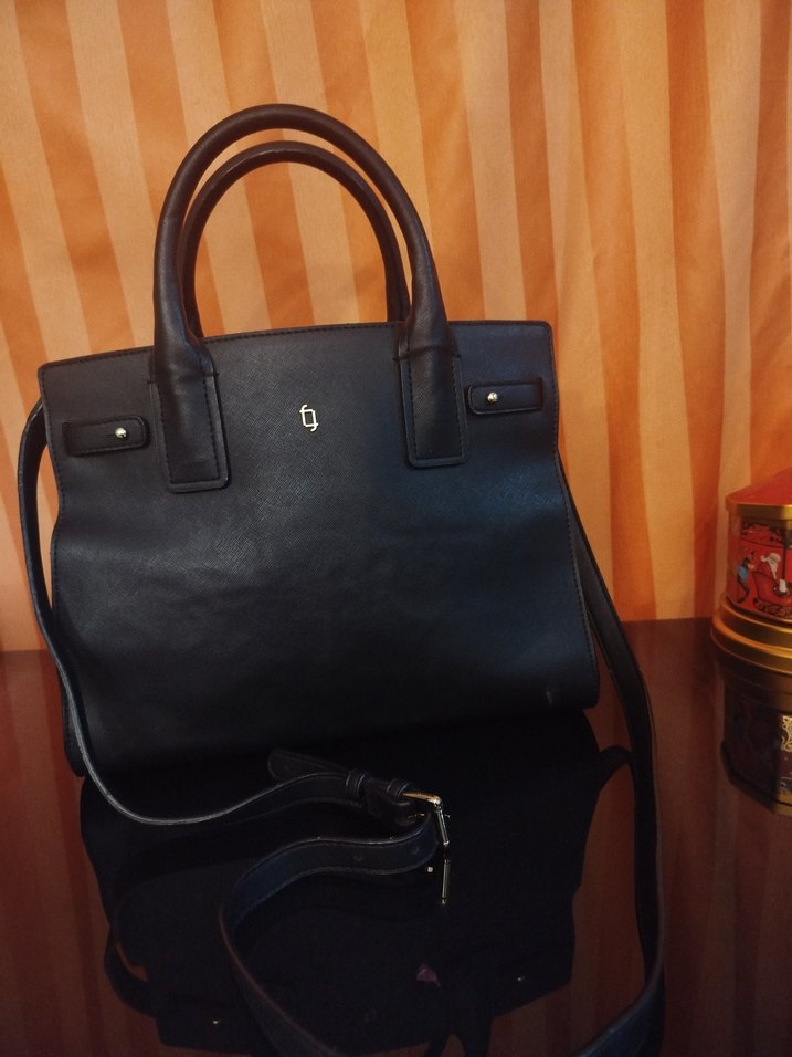 Ofis için uygun, tokalı detaylara sahip siyah deri kadın çantası. Düz yüzeyli, çağdaş ve şık tasarıma sahiptir.