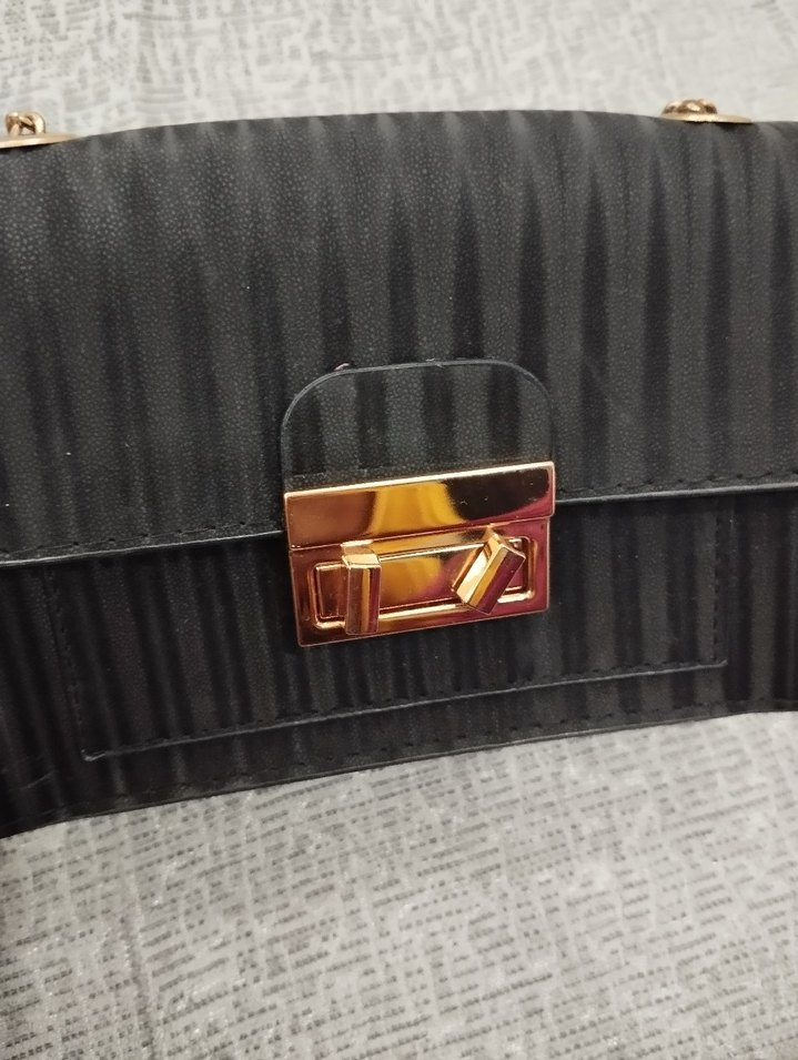 Siyah deri çanta, yılan deseni dokusu ve tokalı altın rengi kilit detaylarıyla modern klasik Paris tarzını yansıtıyor.