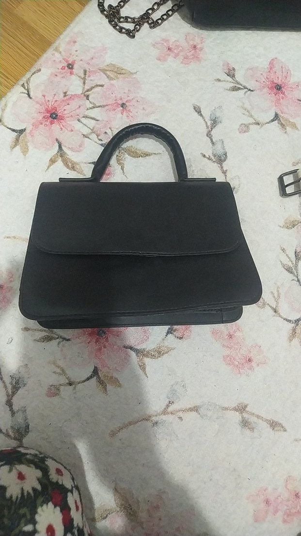 Klasik zarafette siyah deri kadın çanta, tokalı kapama ve vintage tarzıyla günlük kullanıma uygundur.