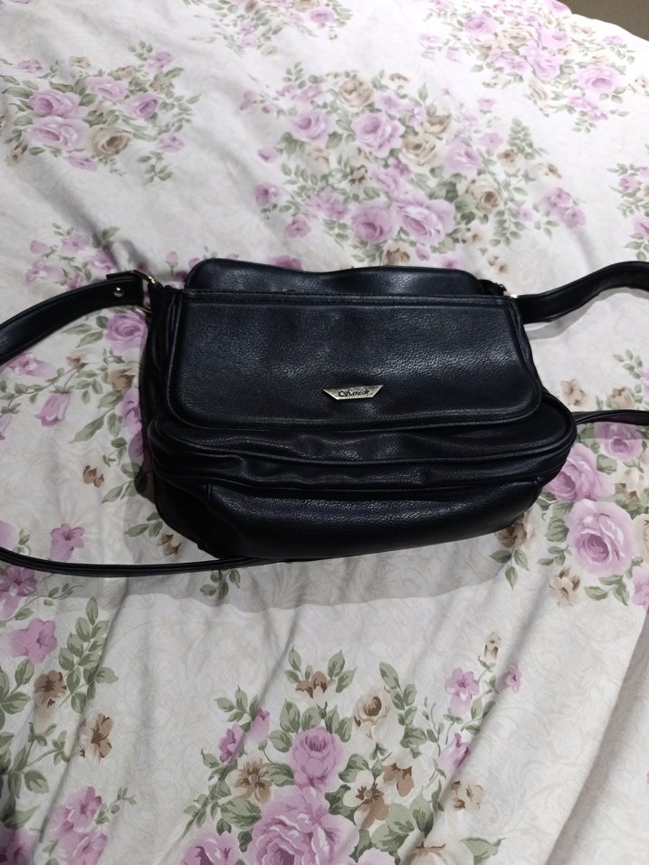 Klasik şıklıkta, tokalı siyah deri kadın çantası. Minimalist ve gotik tarzıyla günlük kullanıma uygundur.
