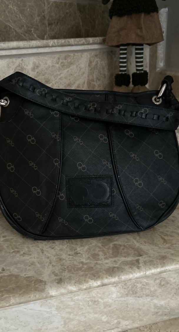 Koyu kahverengi çanta, tokalı klasik zarafeti gotik Paris tarzıyla yansıtıyor. Hiç kullanılmadı