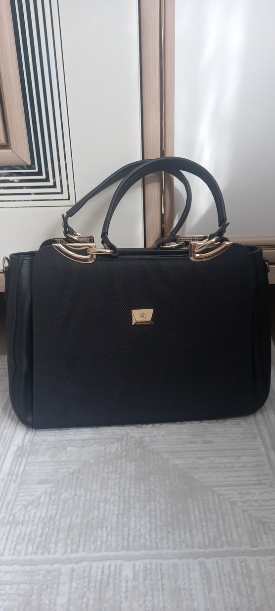 tokalı saplarıyla modern klasik kadın çanta. Ofis kullanımı için uygun, desensiz şık iş tarzı. 25 35 cm
