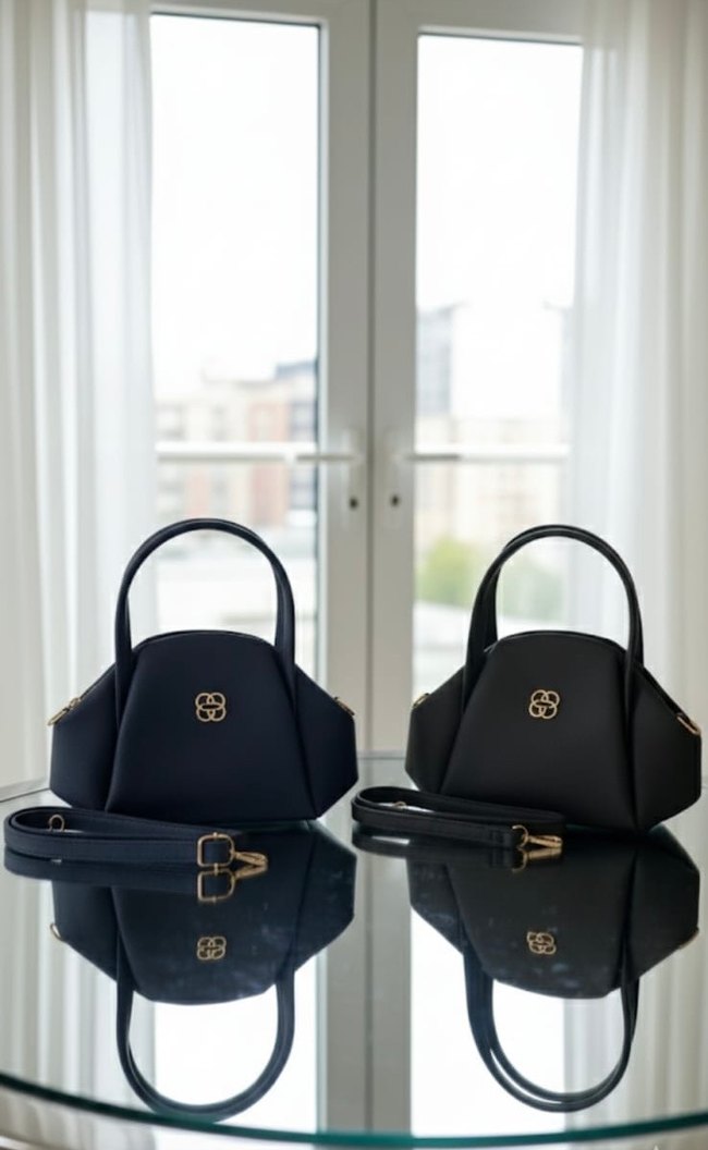 Siyah deri kadın çanta, modern klasik tasarım, minimal baskılı desen ve tokalı kayışlarla günlük şıklık sunar.