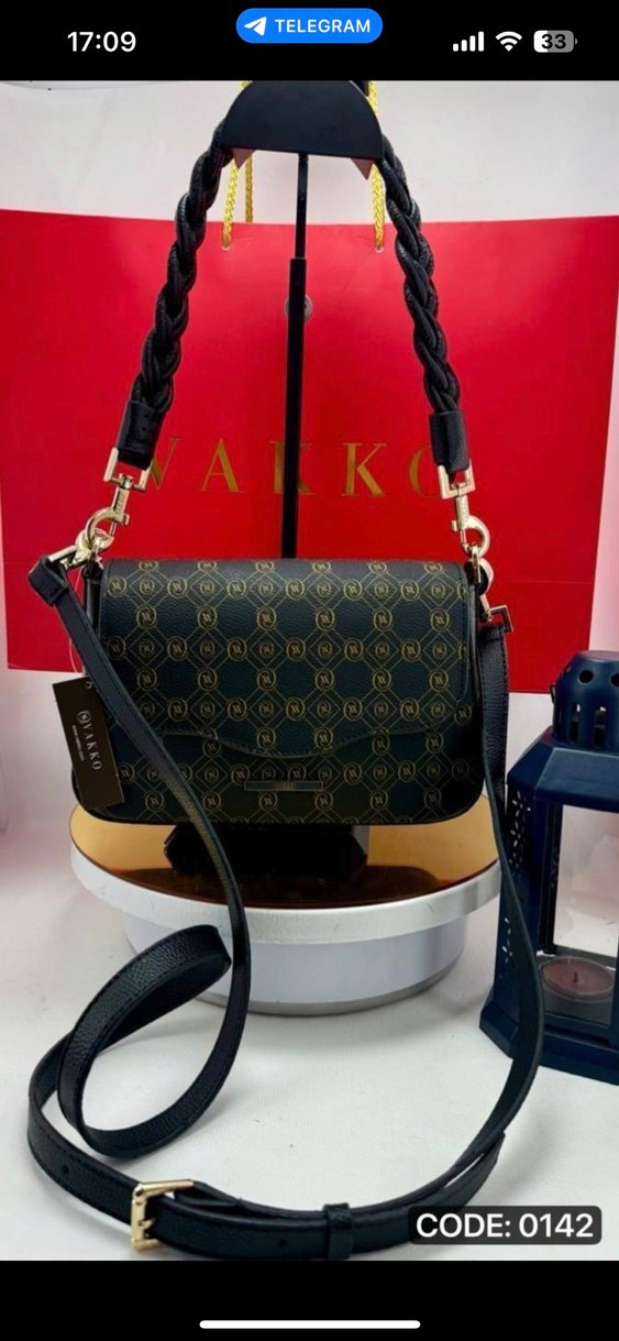 Klasik Paris tarzında, baskılı desenli siyah deri kadın çantası. Tokalı ve örgülü askılı, günlük kullanım için uygun.