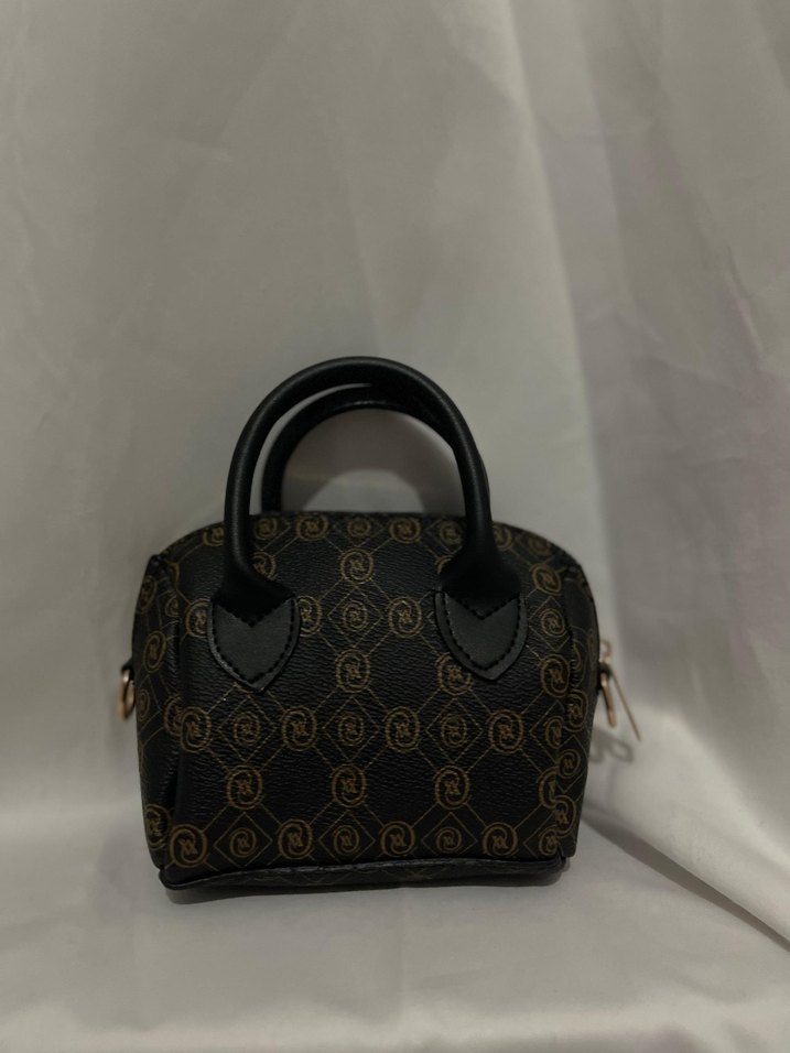 Siyah deri, baskılı desenli ve tokalı kadın el çantası, günlük sokak stiline klasik Paris zarafeti katıyor.