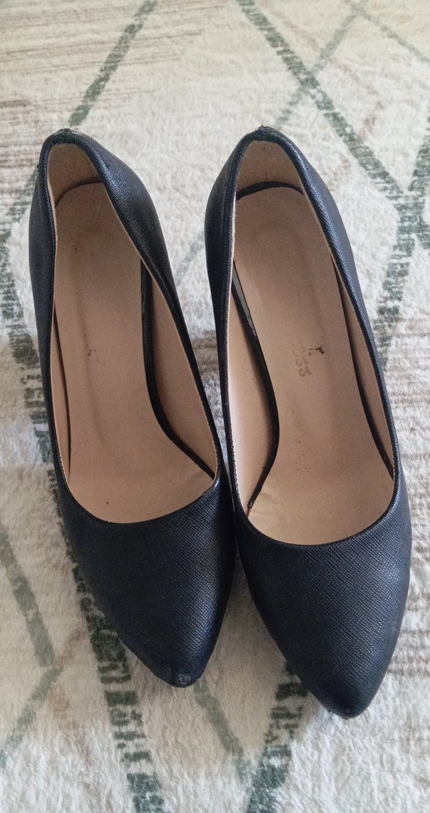 Klasik Siyah Deri Stiletto Topuklu Ayakkabı