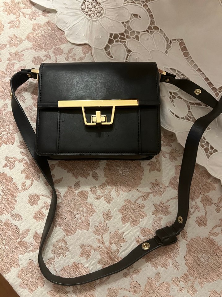 Klasik Siyah Deri Tokalı Kadın Çanta