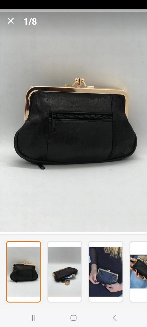 Koyu renk deri ve altın tokalı çerçeveye sahip modern klasik portföy cüzdan, zamansız stil ve günlük kullanım için uygundur.