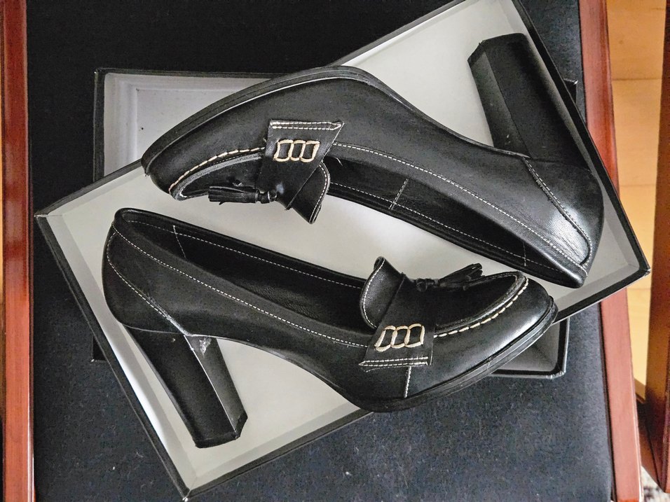 Divarese 40 numara, siyah deri, ofis için klasik 9cm topuklu, az kullanılmış, dolapta beklemiş kadın ayakkabısı.
