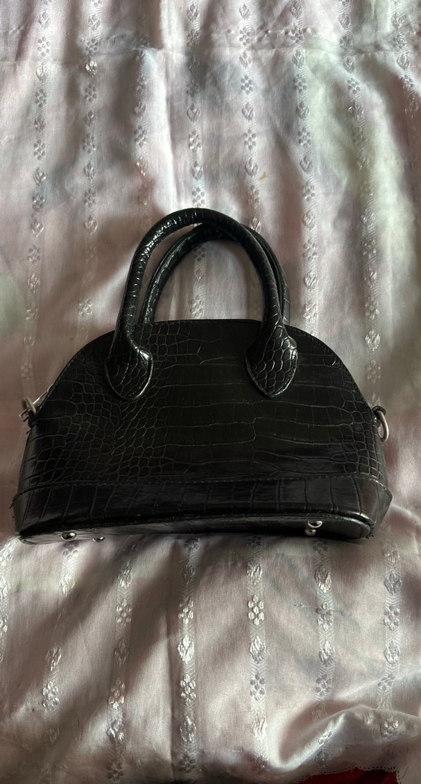 Siyah deri yılan desenli, tokalı kadın çantası. Klasik şıklık ve gotik Paris tarzını bir araya getirir. Askısı yok fermuarı bozuk