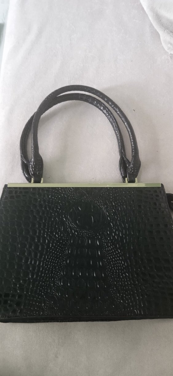 Bu kadın çantası siyah deri yılan deseni ve tokalı detaylara sahiptir. Klasik gotik tarzda, günlük kullanıma uygundur.