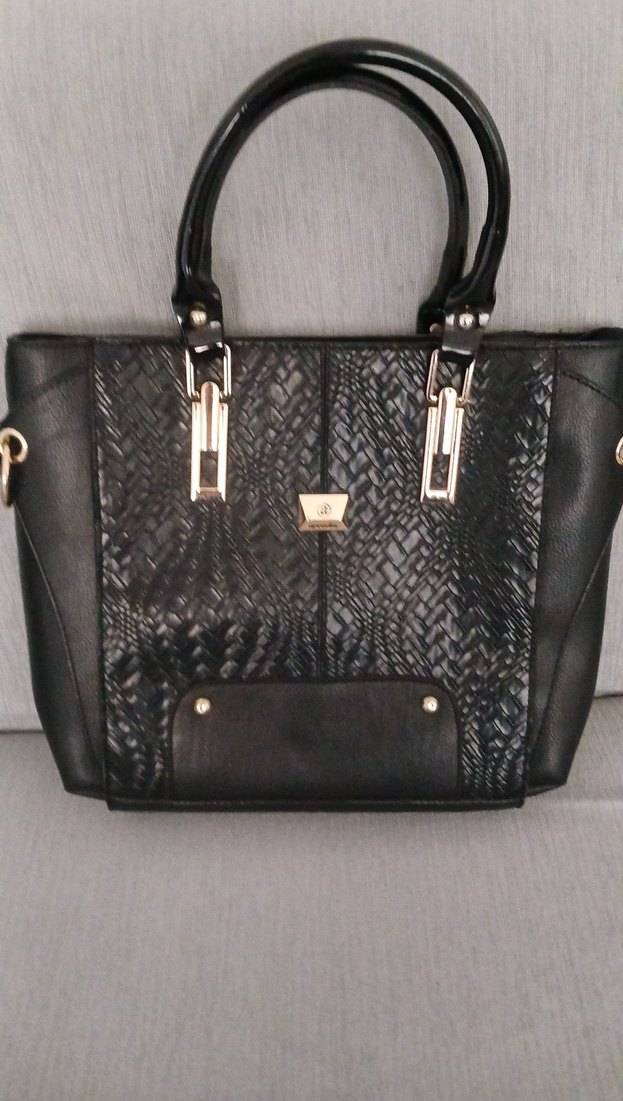 Siyah deri, yılan desenli ve tokalı saplara sahip kadın çantası, klasik zarafet ve goth stilini günlük kullanıma sunar.