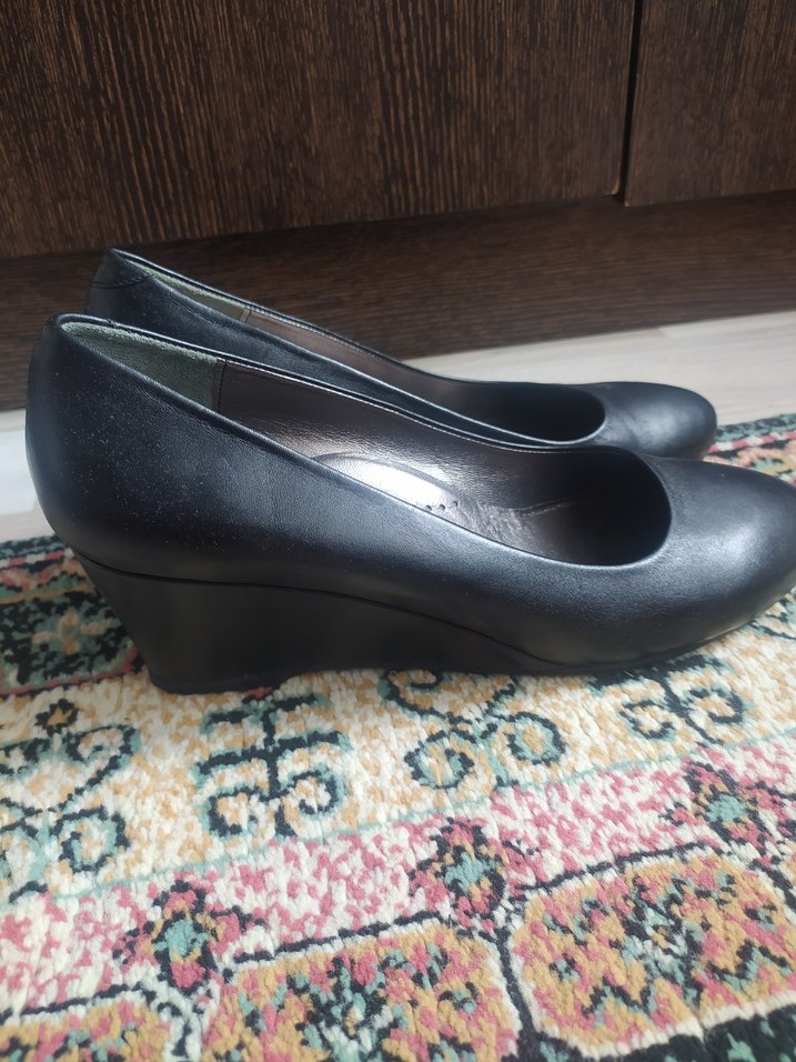 Siyah dolgu topuklu kadın ayakkabısı, tokalı detaylı ve kauçuk malzemeden yapılmıştır. Klasik ve geleneksel stile sahip, ofis kullanımı için uygundur.