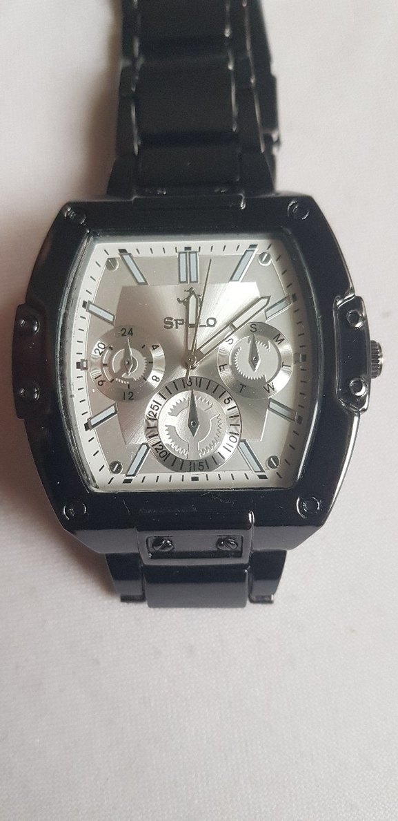 Bu erkek biker saat siyah metal kayış ve çoklu alt kadranlara sahip gri kadran ile klasik ve güçlü bir görünüm sunar. ⌚