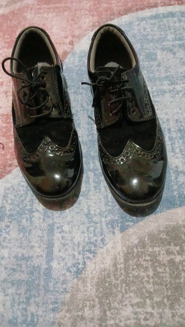 Erkek çocuklar için özel siyah ayakkabılar, parlak yüzey ve klasik brogue detaylarıyla. Bağcıklı ve tokalı, kauçuk tabanlı şık tasarım. kaçırmayın