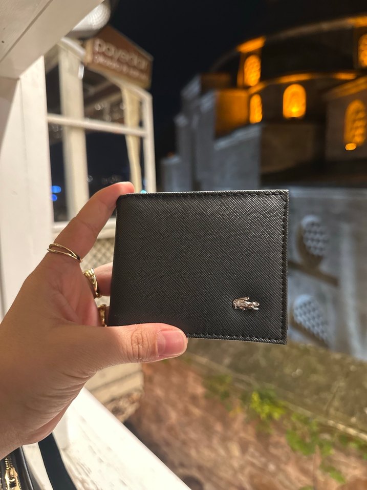 Klasik tasarımlı siyah erkek cüzdanı, baskılı dokusu ve küçük metal logo detayı ile iş ve sokak stiline uygun.
