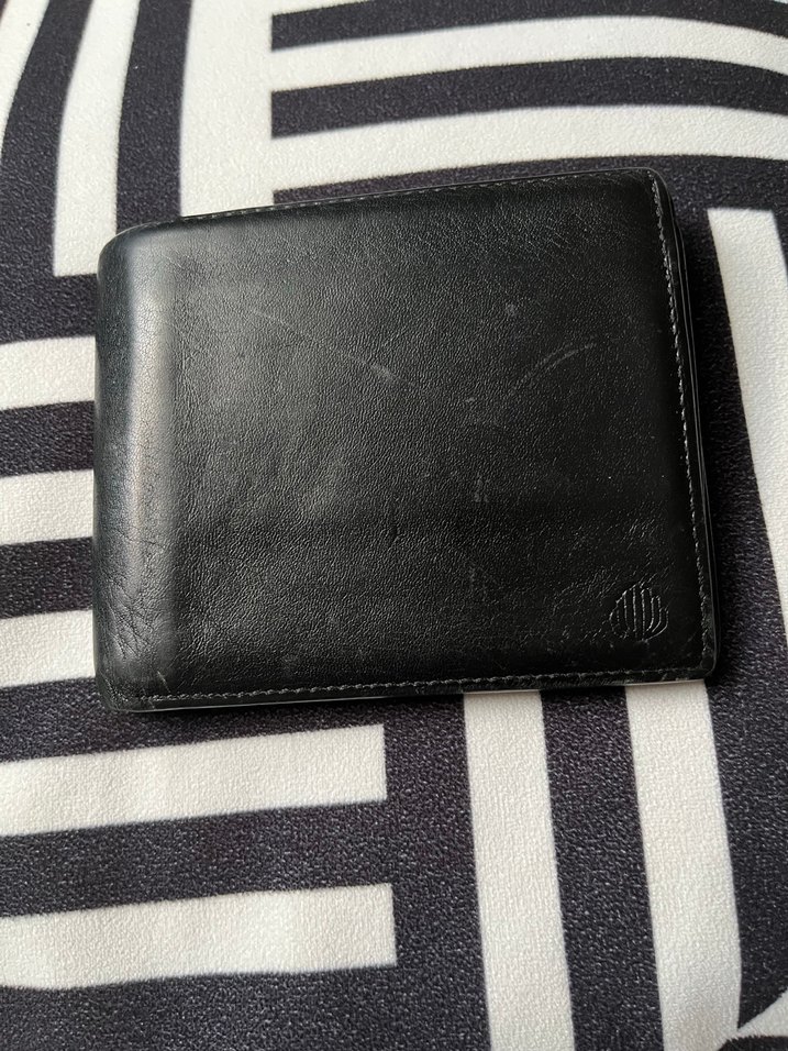 Klasik siyah renkte, desen içermeyen erkek cüzdanı. Şehirli ve zarif tarzı yansıtan kompakt tasarım.