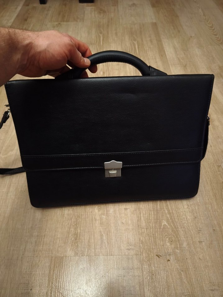 Siyah renkli, tokalı modern klasik tarzda erkek evrak çantası, iş için şık ve zarif bir tasarıma sahiptir.