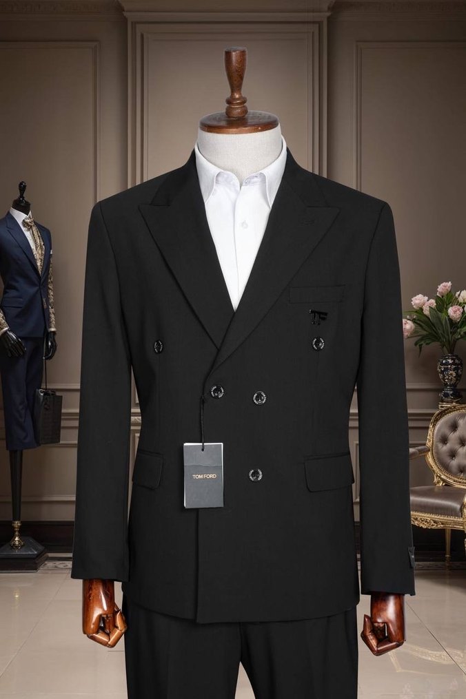 Klasik siyah renkli, kruvaze düğmeli ve kesimi regular olan erkek takım elbisesi. Uzun kollu ve desen içermeyen modern klasik stilde, ofis ortamına uygun.