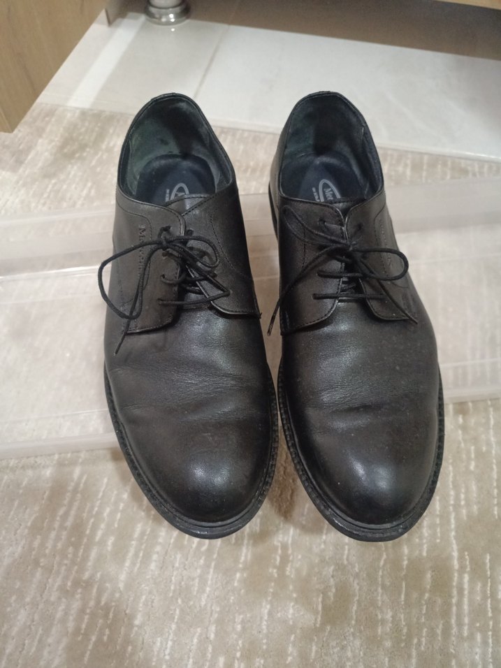Siyah, lastik tabanlı erkek klasik ofis ayakkabısı, sade ve zamansız tasarımıyla zahmetsiz şıklık sunar. 1 kez eşim giydi . tertemiz defosu yok